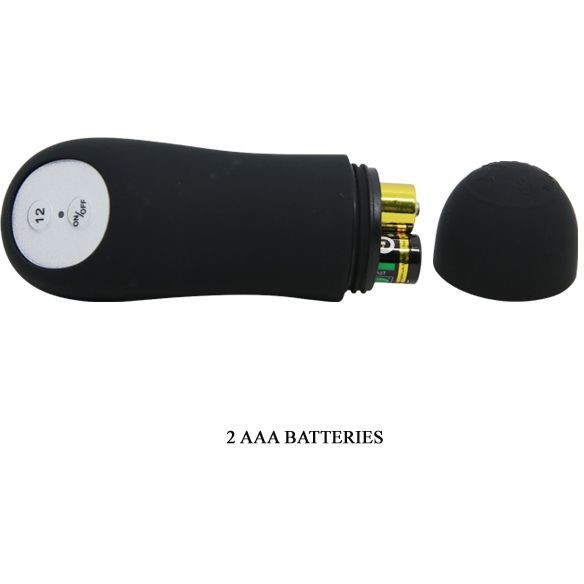 медицинский силикон, черная, с ограничителем, 9см, диаметр - от 1 до 3см, 12 режимов вибрации