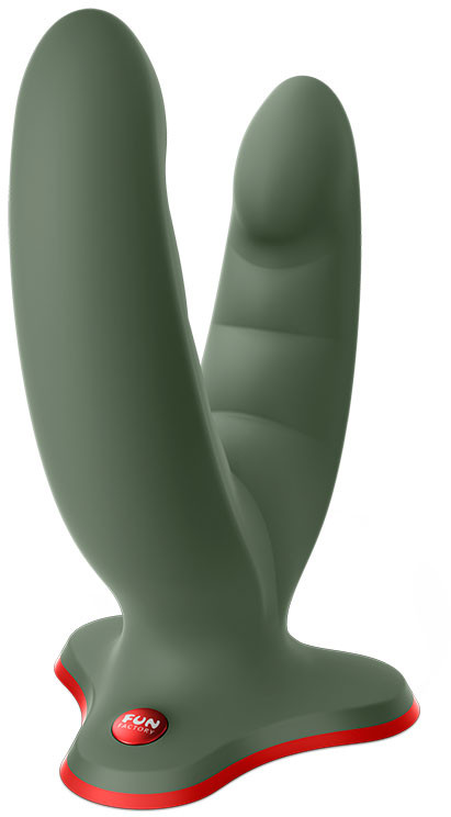 Выполнен девайс в виде двух рельефных фаллоимитаторов разного размера. Гибкость девайса, продуманная до мелочей конструкция и потрясающий материал позволяют использовать его для одновременной вагинально-анальной стимуляции, а также соединять два ствола вместе для чувственных вагинальных ласк. Кроме того, один из стволов может использоваться для внешней стимуляции, когда второй находится анально либо вагинально