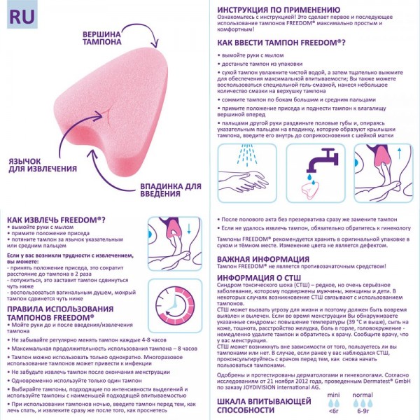 Для введения необходимо сжать вместе ножки на основании, и, ввести как обычный тампон