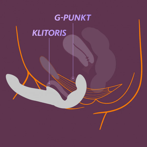 Форма вагинального отростка распологается внутри лона таким образом, что дарит невероятное ощущение максимальной заполненности, стимулирует все стенки влагалища, и самое главное весьма активно ласкает G-точку Страпонессы! Также, страпон имеет клиторальный отросток, что гарантирует максимальное наслаждение!