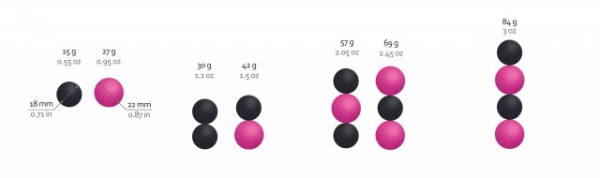 Набор "Geisha Balls Magnetic" включает в себя 4 магнитных шарика и специальную силиконовую петельку! Черные шарики имеют вес по 15г, розовые - по 27г.