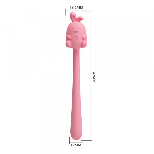 Форма девайса в виде гибкой палочки с увеличенной округлой головкой, в основании которой находится милый зайка позволяет использовать его как вибратор для клитора, массажер для G-зоны, анальный стимулятор, массажер простаты, и даже как зонд для уретральной мастурбации! Детализированный зайка также идеален для внешней стимуляции всех эрогенных зон!