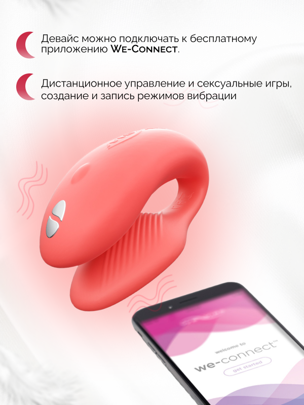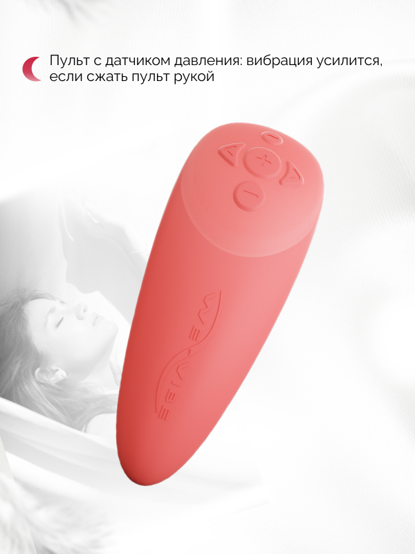 медицинский силикон, 10 режимов вибрации, уровни интенсивности, "умный" пульт управления, бесплатное приложение "We-Connect"